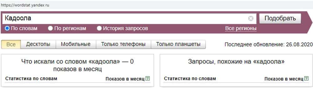 Количество запросов по лохотрону Кадоола в поисковике Яндекс