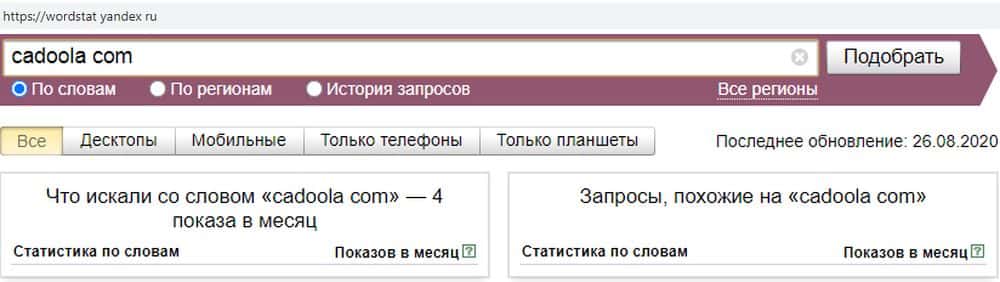 С запросом "cadoola.com" ситуация та же. Такая низкая посещаемость говорит о том, что кидалы Кадоола могут в любое время свернуть свой скам-проект и слиться с деньгами игроков.