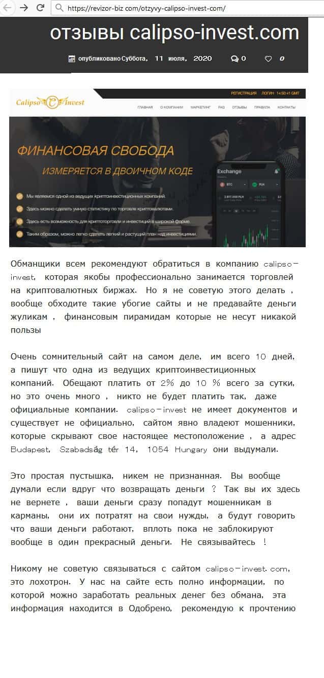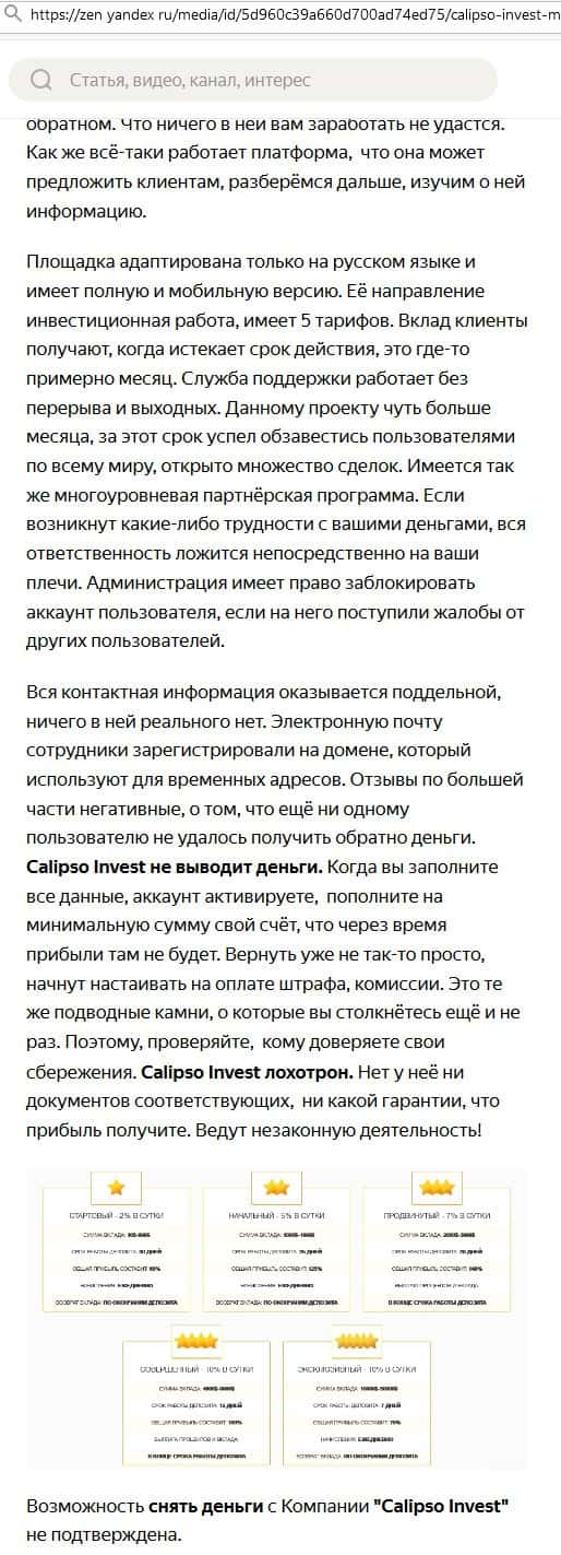 Не удивительно, что все обзоры сходятся в одном: Калипсо Инвест - обычная мошенническая контора, созданная собрать как можно больше денег и кинуть клиентов,.