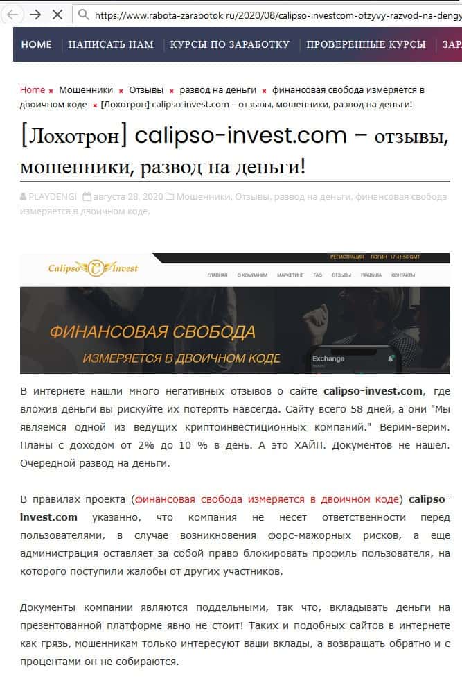 calipso-invest com - официальный сайт лохотрона Calipso-Invest