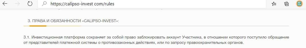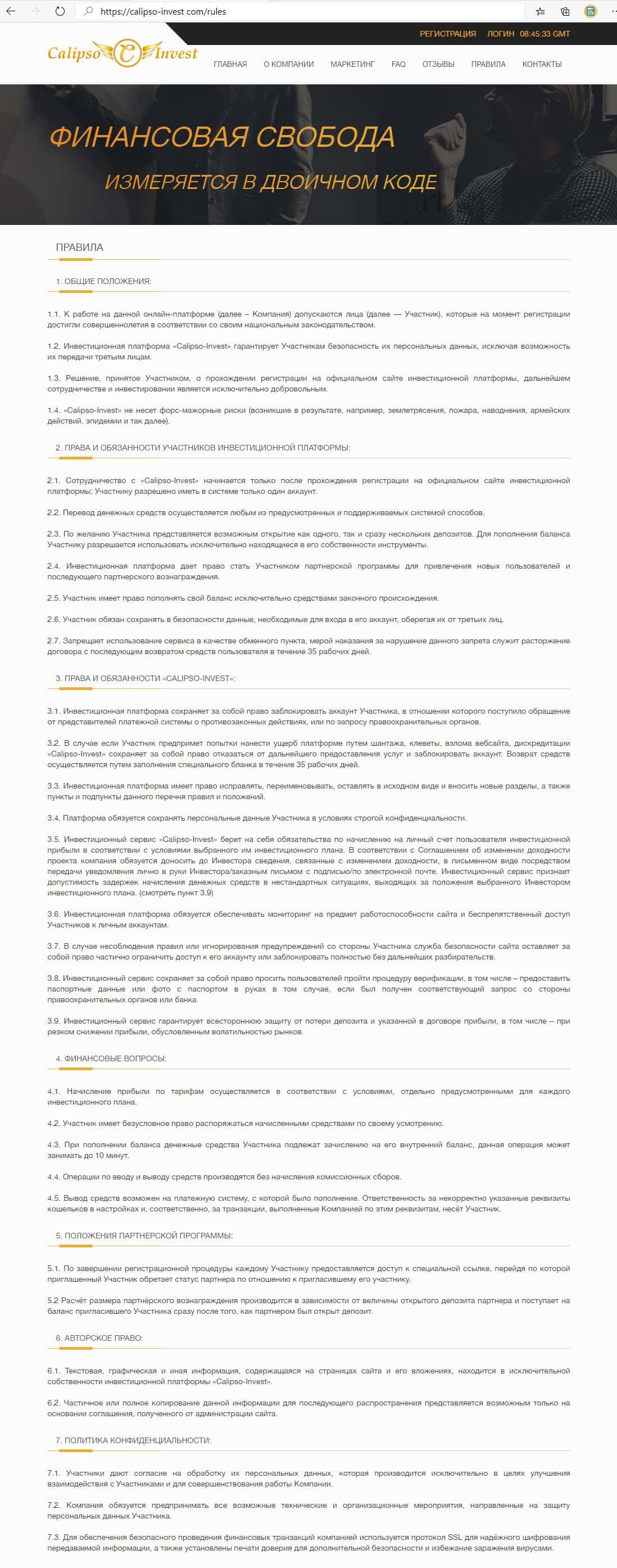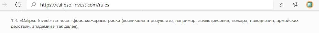 Клиентское соглашение жулики из Calipso-Invest переименовали в правила, а по ним обманщики никакой ответственности, тем более в период эпидемии, перед своими клиентами мошенники не несут.