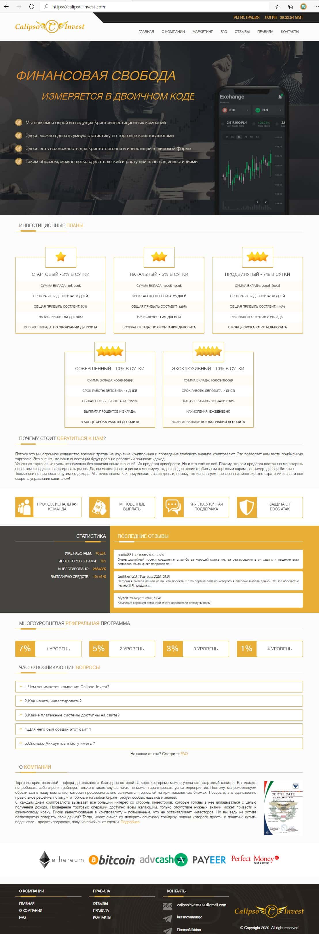 - calipso-invest com - официальный сайт лохотрона Calipso-Invest