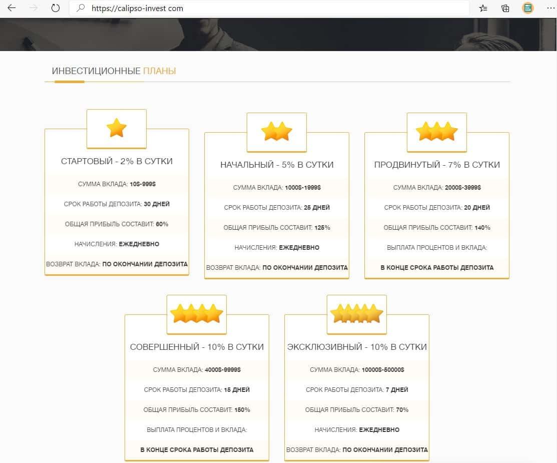 calipso-invest com - сайт хайпа мошенников Калипсо Инвест