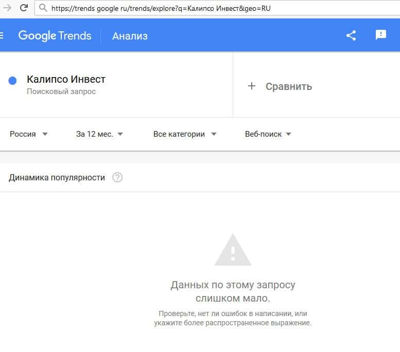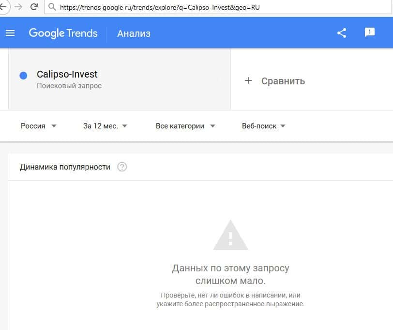 У пользователей Гугла название сайта на русском Калипсо Инвест обычно популярностью не пользуется.