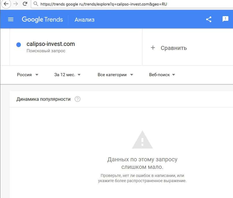 Статистика по имени домена "calipso-invest com" но без точки без точки аналогичная.Число запросов о хайпе Калипсо Инвест в поисковике Гугл