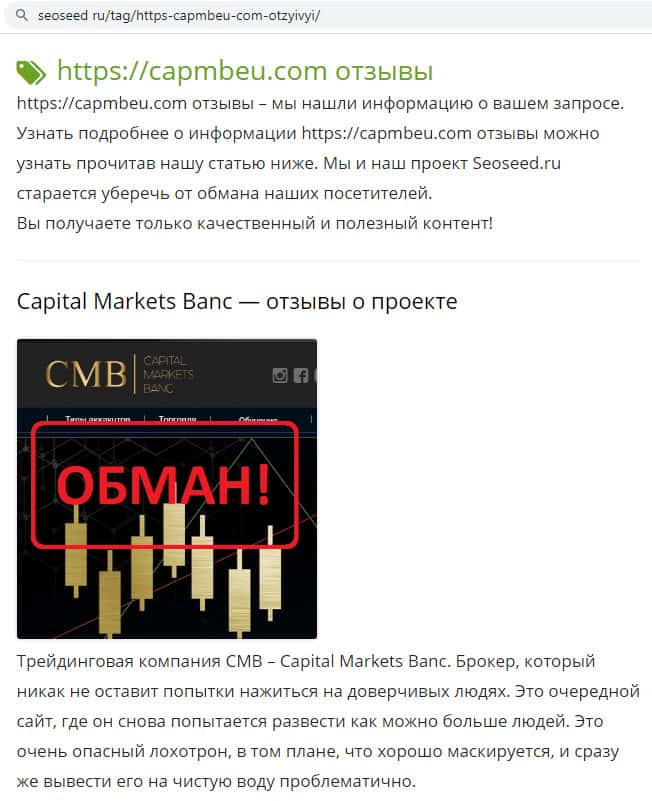 Остатки информации о мошенническом проекте CapMBeu на просторах интернета