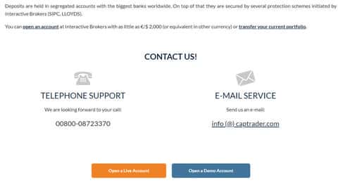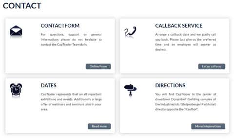 Под контакты аферисты КАП Трейд отвели отдельный раздел своего подвального сайта, в котором перечислили крайне мало контактов, что определенно говорит о нежелании мошенников CAPTrader тратить дополнительные средства на их обслуживание и поддержку, а так же у жуликов КАП Трейд не указаны адреса офисов. Ниже перечислим контакты шулеров CAPTrader: