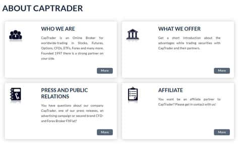 После лохотрон CAPTrader предлагает наивной клиентуре открыть у них счет для дальнейшего слива средств наивных пользователей в данную помойку под банальным предлогом торговли форекс, которой "якобы" занимаются шулера КАП Трейд. На изображении, расположенном ниже, вы можете наглядно увидеть очередной раздел сайта лохотрона CAPTrader.
