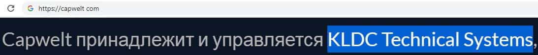 Юридическое лицо KLDC Technical Systems владеет мошенническим онлайн-сервисом capwelt com, компании Кап Велт, у которой оффшорная регуляция.