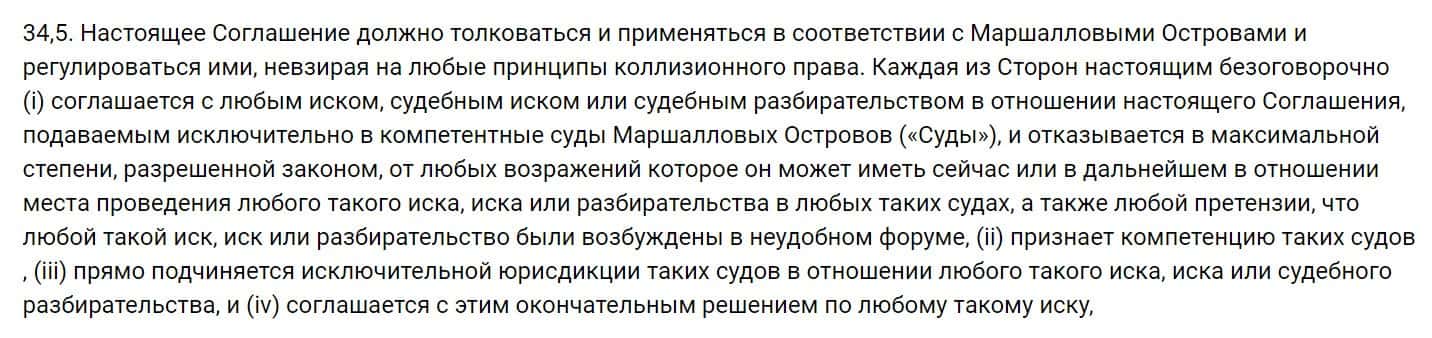 Клиентское соглашение на онлайн-портале жульнической конторы Кап Велт