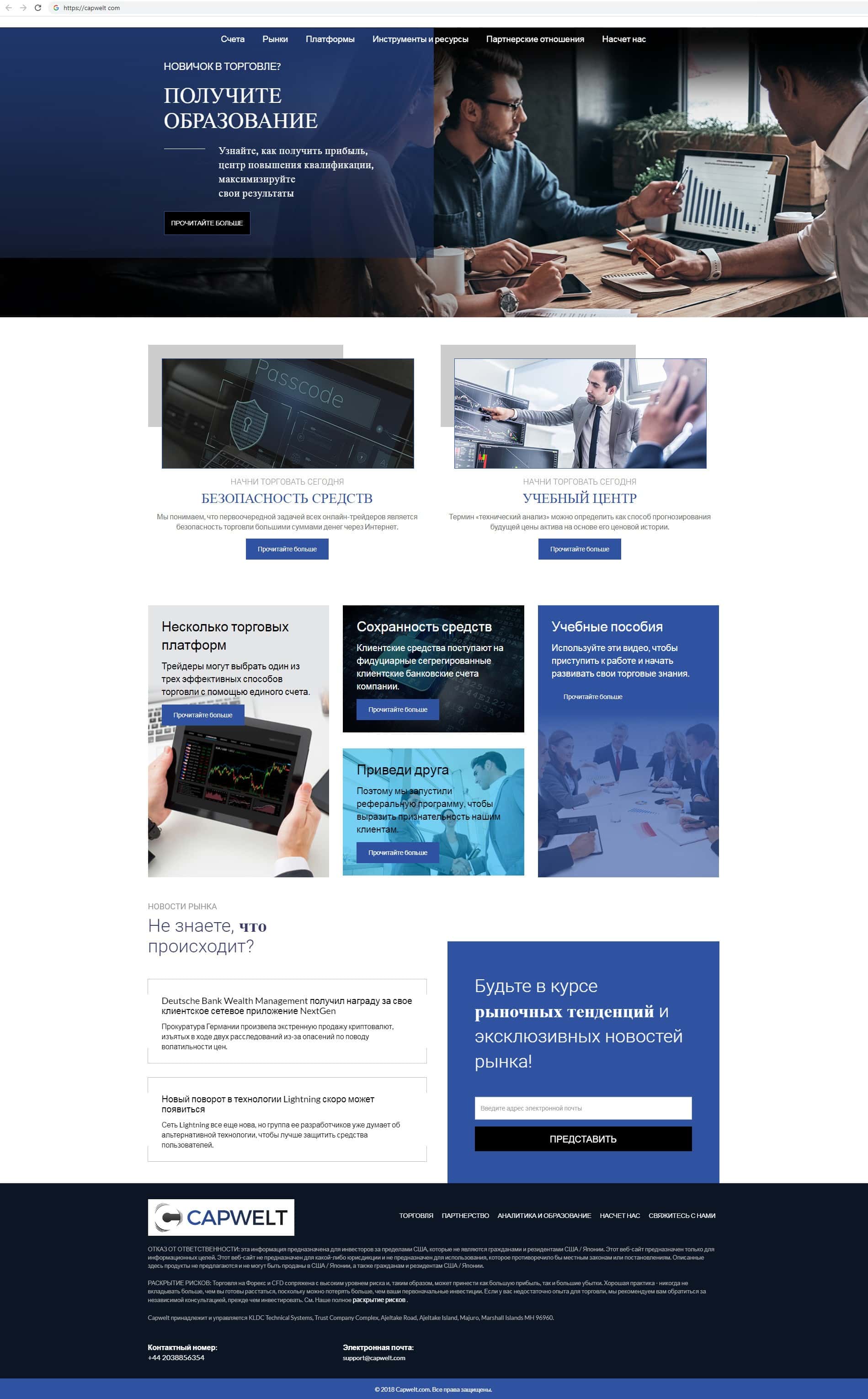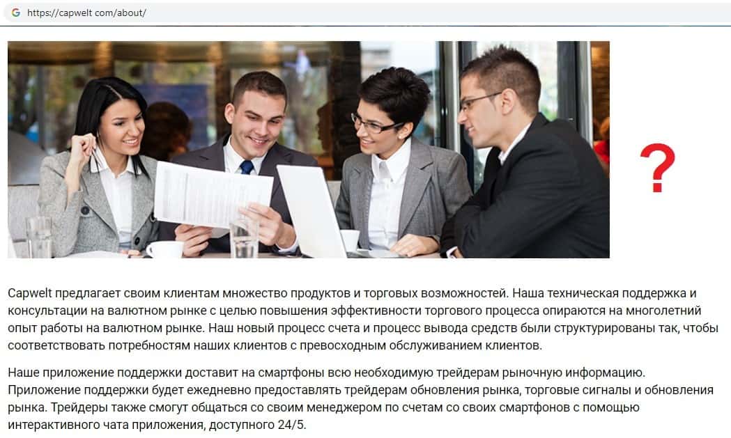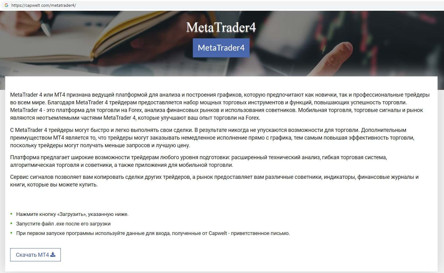 - Информация о торговой платформе на сайте скам-компании Cap Welt