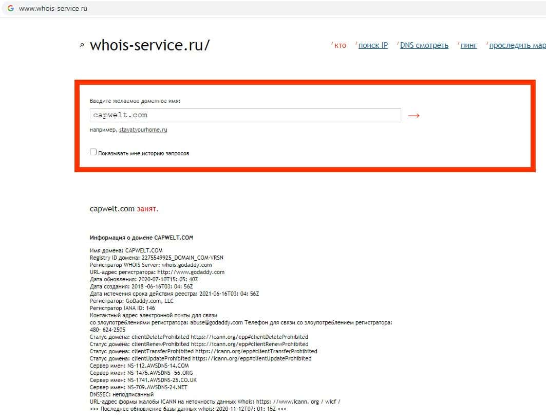 Сервис whois-service ru не может найти данные о владельце домена сайта мошеннической организации CapWelt, доверять сайту данной скам-конторы нельзя.