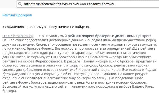 otzovik-rf ru - сайт, где можно найти отзывы о любом брокере, но это не в случае с CapitalFMI