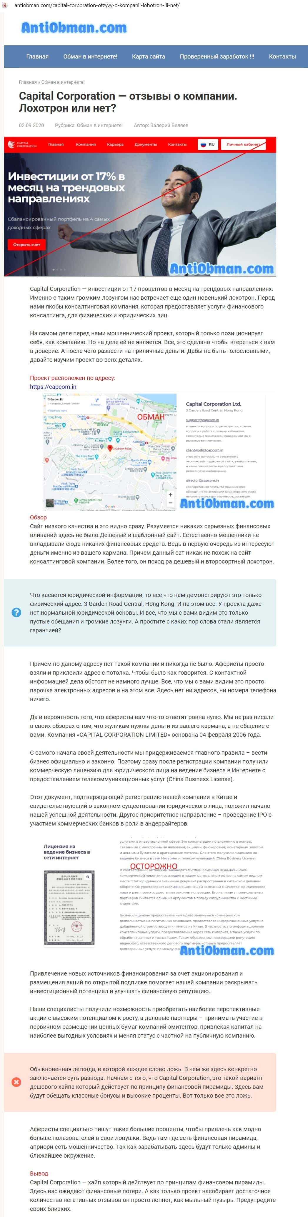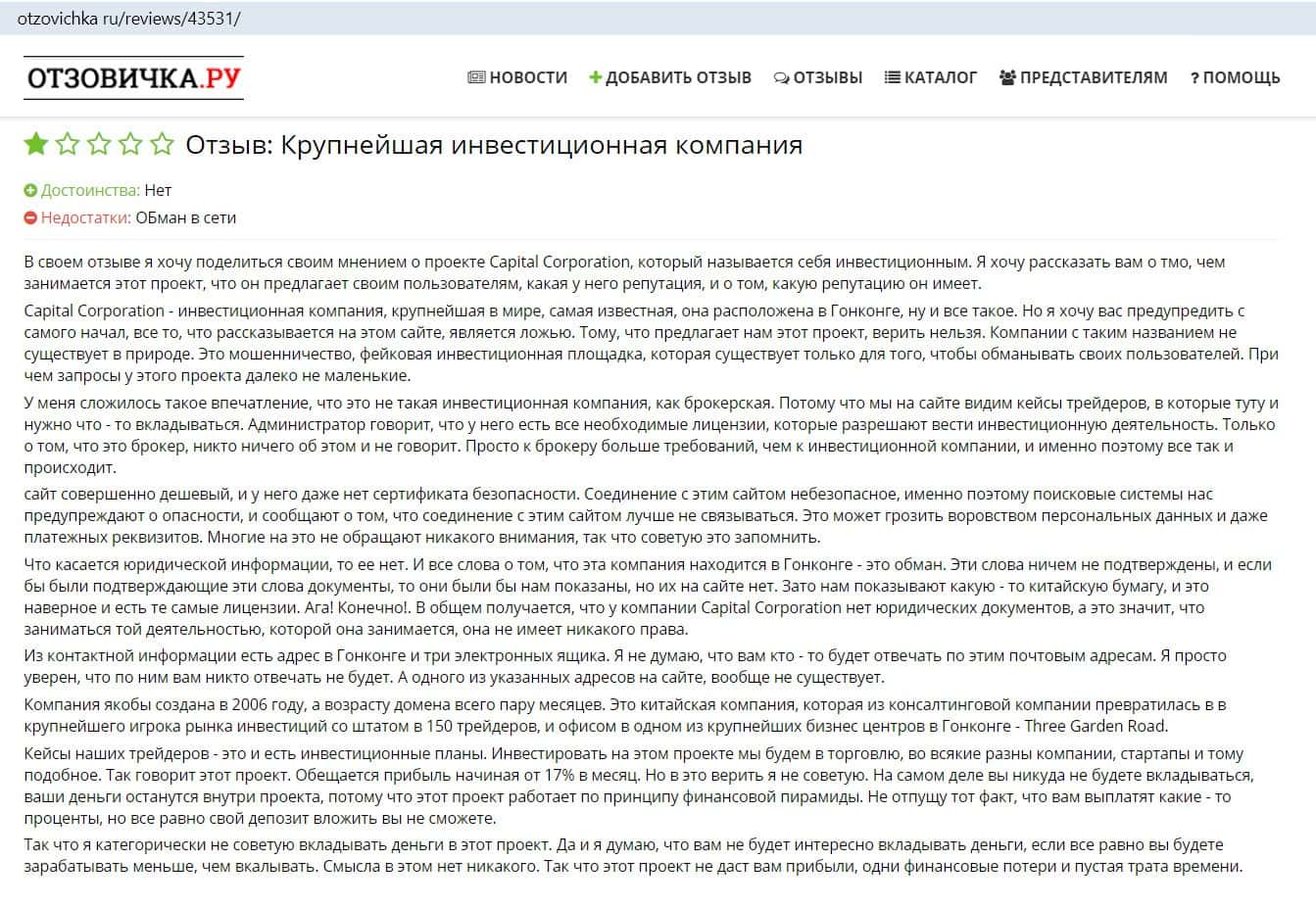 - Отзывы людей о мошенниках Капитал Корпорейшион
