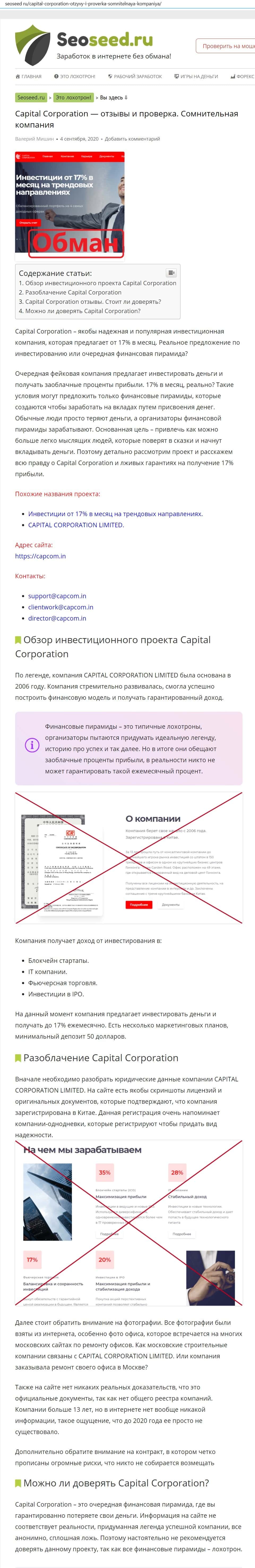 Обзорные статьи, найденные в интернете о мошенниках CapСom In