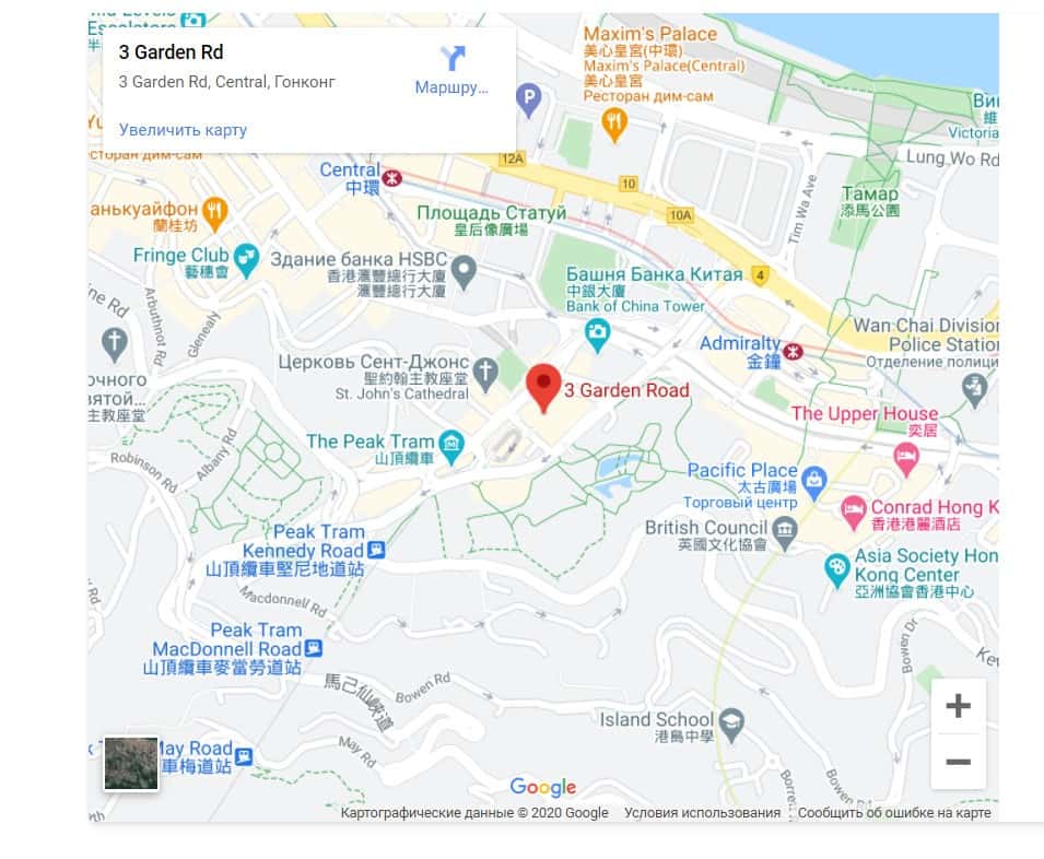 Кроме этого имеется адрес офиса в Гонконге с геометкой, что не поможет российским клиентам, если они захотят обратиться за помощью по поводу возврата денег.