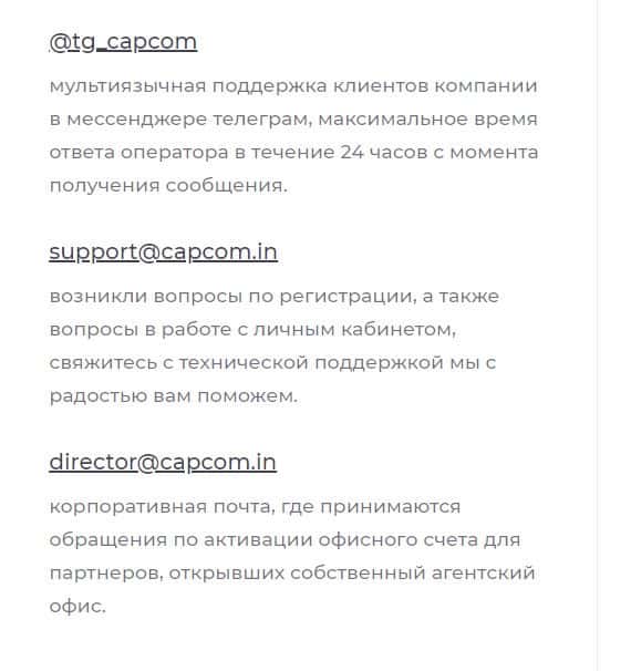 Сайт лжеброкера CapСom In сделан как клон других подвальных ресурсов черных брокеров: масса фейковой информации, поддельные лицензии, лживые обещания.