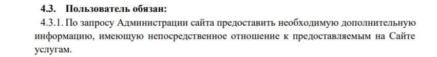 Далее речь идет о том, что пользователь обязан предоставить документы по требованию компании CapСom In для идентификации личности.