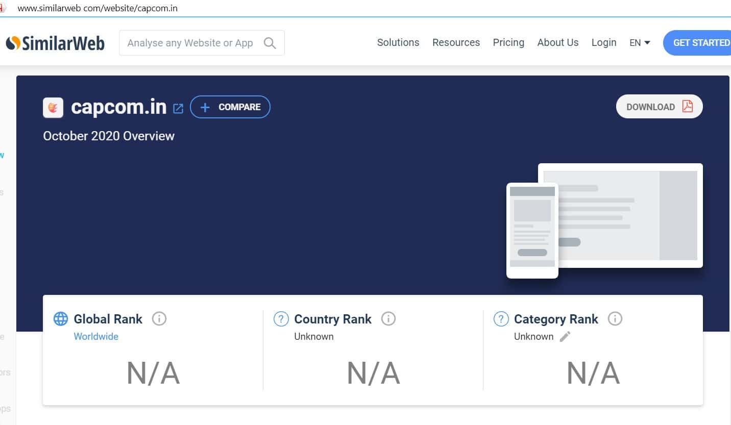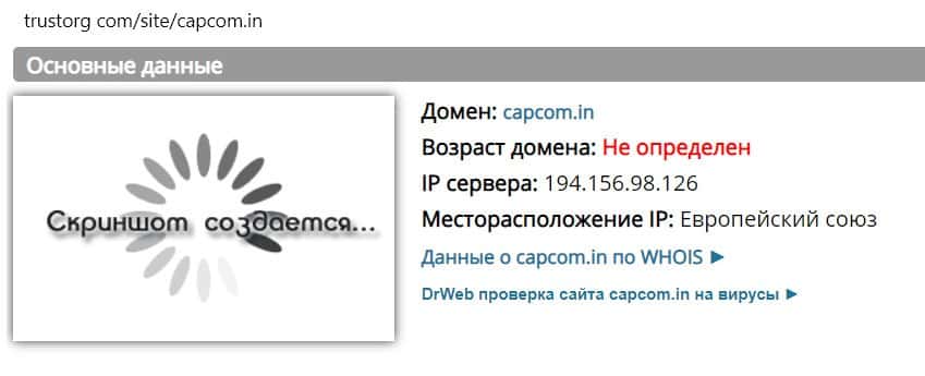 Доменное имя мошеннического сайта "capcom.in" пользователи вбивали в поисковую систему Гугл слишком редко, поэтому данных по этому запросу очень мало.