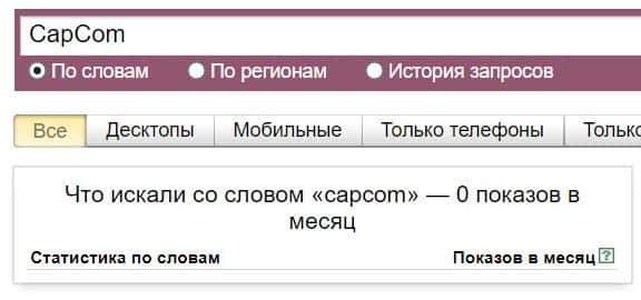 Название мошеннической конторы "CapСom", написанное на английском языке, пользователи не искали в системе Яндекс ни одного раза за месяц.