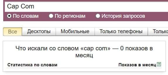 То же название "Cap Сom", но написанное с пробелом, люди не пытались найти в системе Яндекс ни разу.