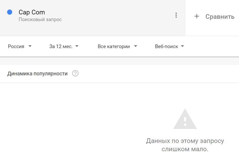 Если вбить то же название на английском языке, но с пробелом - "Cap Сom", результат поиска будет таким: очень мало данных.