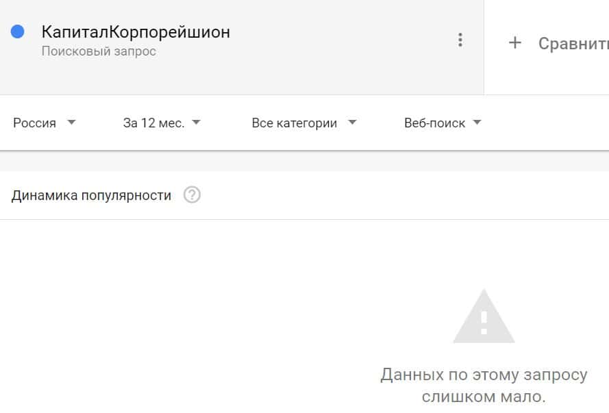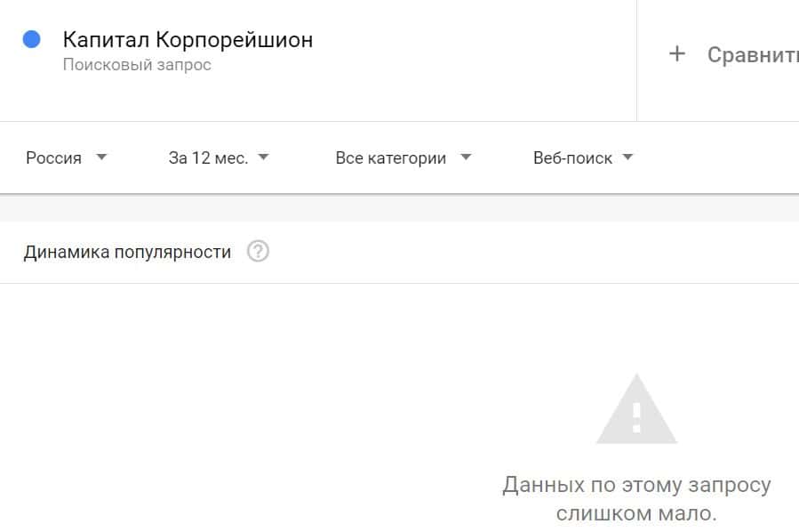 То же название на русском языке, но с пробелом "Капитал Корпорейшион", пользователи не вбивали в поисковую строку в системе Гугл.