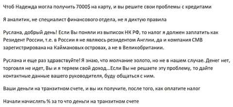 - В CMB не выводя клиенту 7 000$, пытаются еще развести его на сумму равную почти 1 000$
