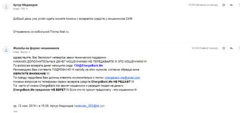 К нам пришло письмо от человека, который решил попробовать заработать на рынке Форекс, а вместо этого получил горы слез и разочарований. Он написал, что попался в 4 брокерские конторы, которые перебирал одну за другой. Как только его кидала одно кухня, он в надеждах находил другую, и третью и четвертую. После этого коловорота потерпевший решил обратиться за помощи на веб-сайт ChargeBack.Me где пообещали помочь. И вот собственно и перечень форекс-лохотронов: