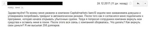 - Жалоба от очередного обворованного клиента конторы Capital Markets Banc