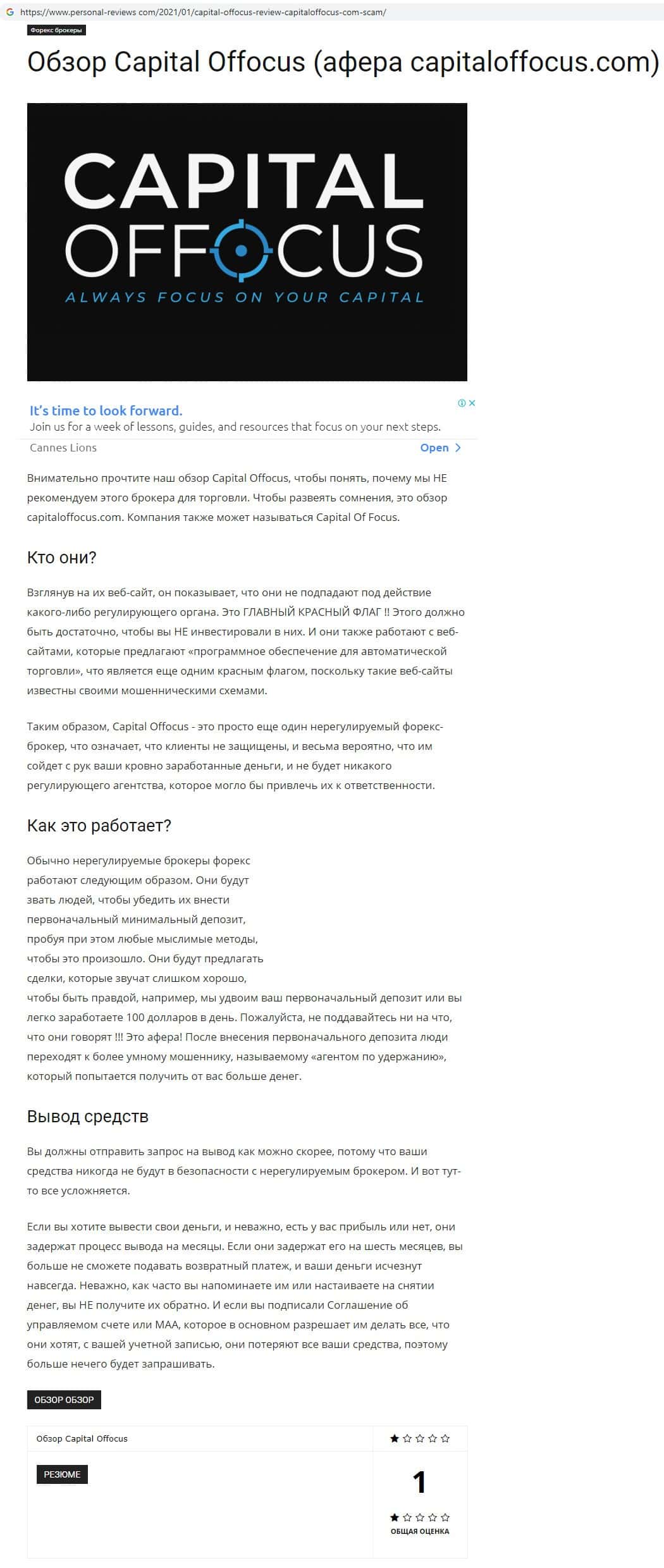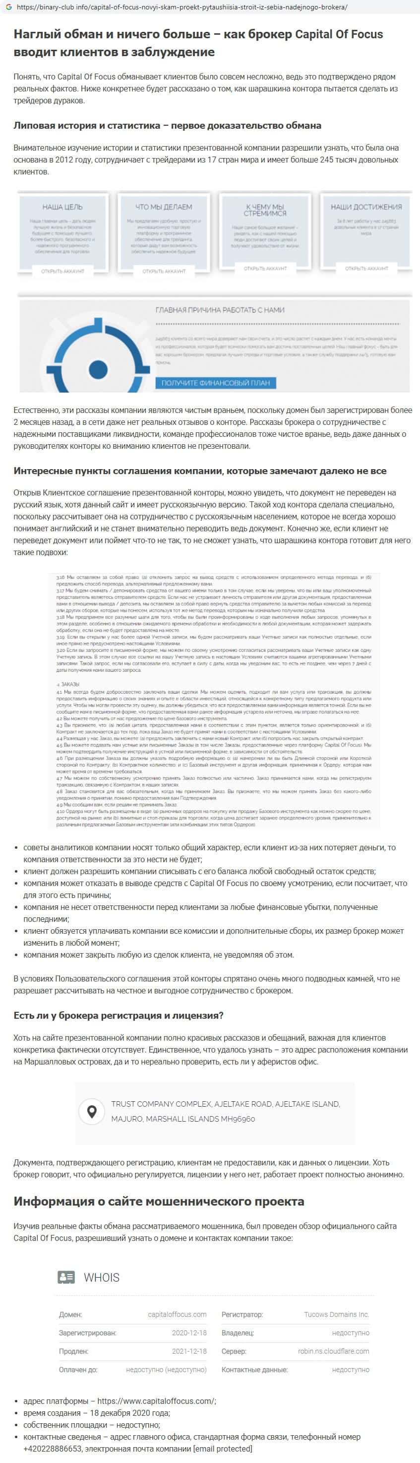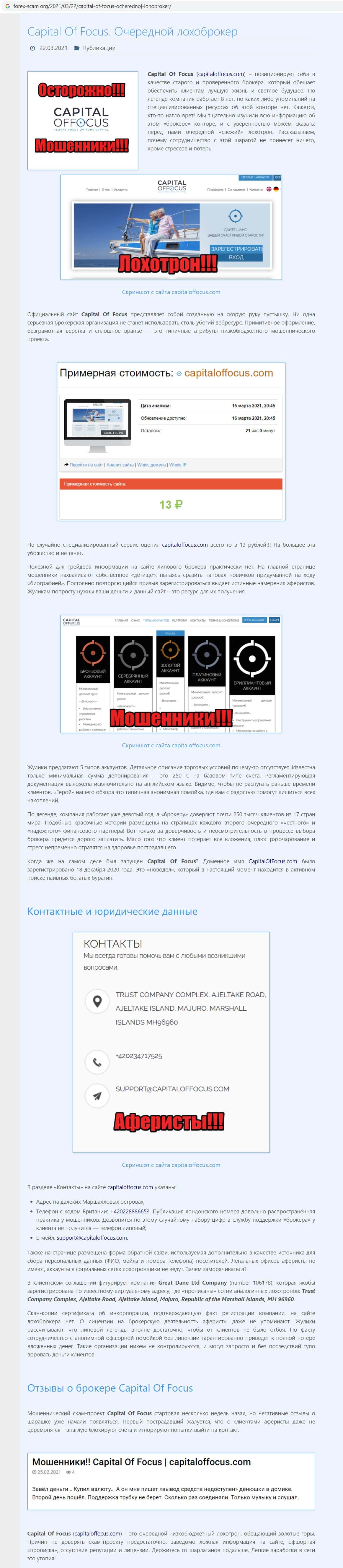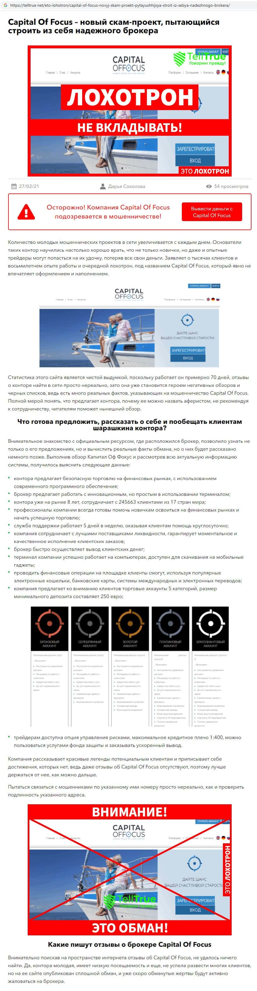 Информация о псевдо-брокерской конторе CapitalOfFocus