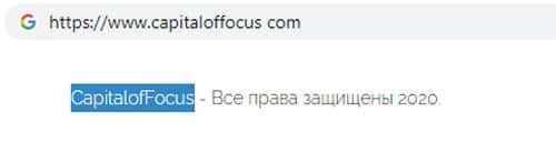 Обманщики CapitalofFocus конкретного юридического лица с формой собственности не указывают, а вместо этого указали часть домена своего сайта.