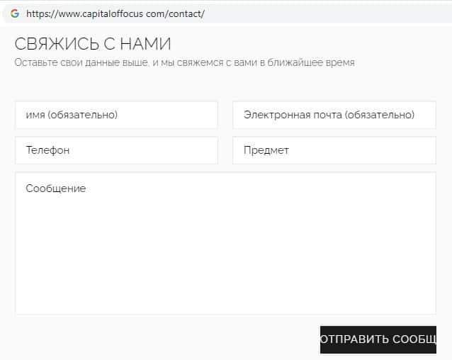 - Отсутствие информации о руководстве скам-конторы CapitalOfFocus
