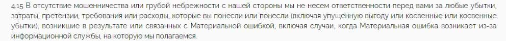 Согласно тому, что аферисты пишут в соглашении, компания CapitalOfFocus не несет никакой ответственности за не полученную прибыль клиентом, а также за возможные убытки.