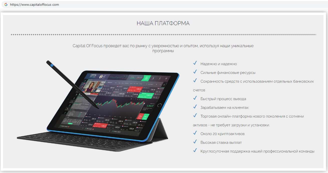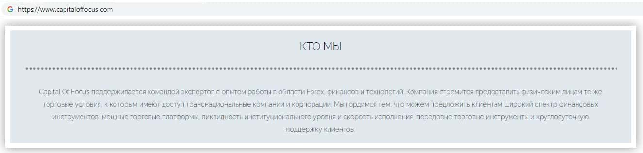 - Обзор главной страницы скам-организации CapitalOfFocus