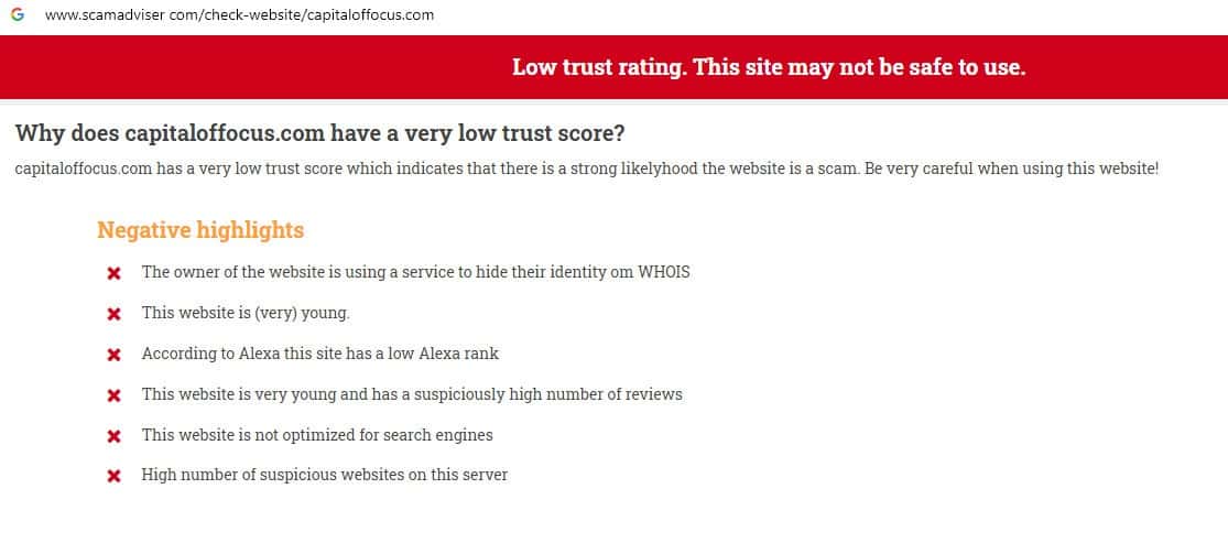 Скам-компания CapitalOfFocus является нерегулируемой, доверять свои денежные средства сомнительной конторе ни в коем случае нельзя !!!