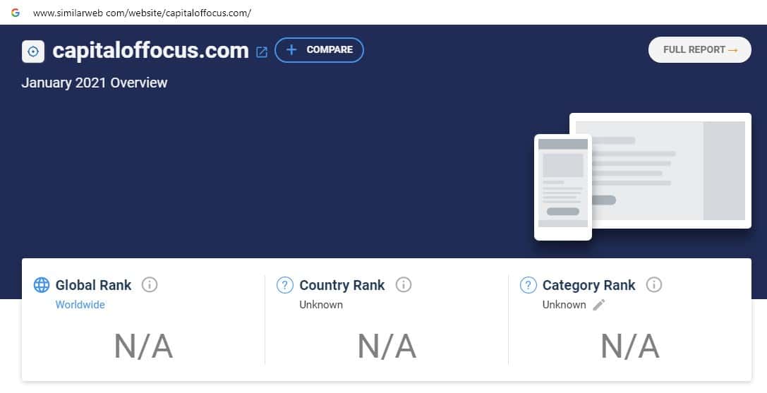 При проверке источников бренда по странам скам-конторы Капитал Оф Фокус на сайте similarweb com, информация отсутствует, что является признаком фейкового лохотрона.