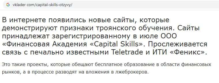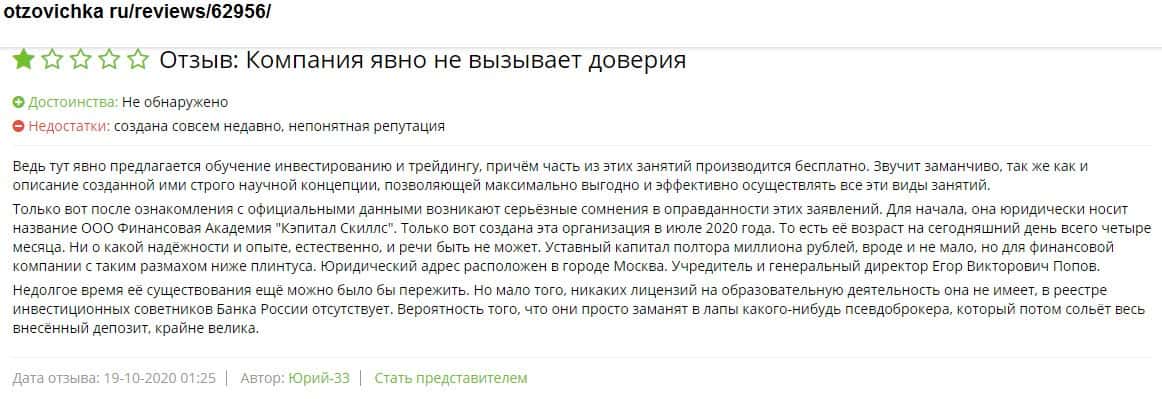 Обзор отзывов пользователей о псевдо академии Капитал Скиллс