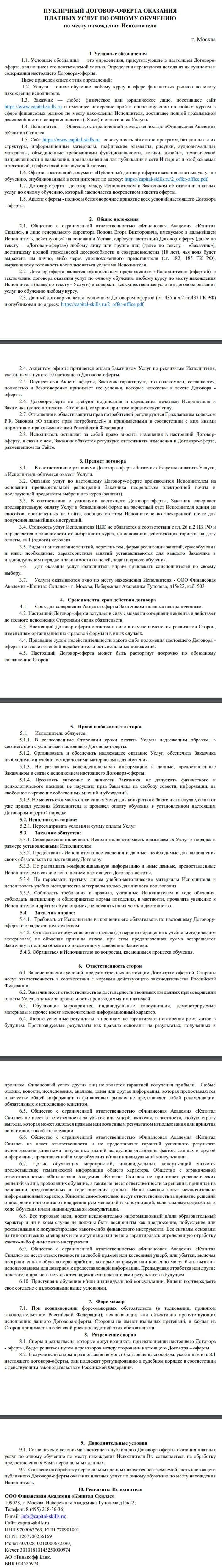 Ниже представлена полная версия пользовательского соглашения псевдо академии Капитал Скиллс, с которой вы можете ознакомится лично.
