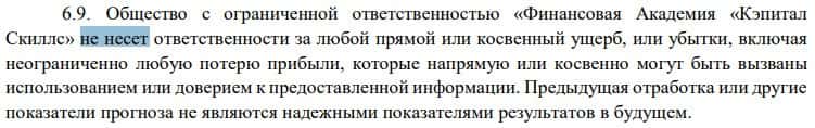 Еще одна ловушка в договоре жуликов Капитал Скиллс - это то, что чрезмерное доверие к прогнозам шараги, может привести пользователей к потере собственных денежных средств!