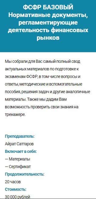 Курс ФСФР БАЗОВЫЙ Нормативные документы, регламентирующие деятельность финансовых рынков - 20 часов/30 000 руб. Сюда входит: материалы и сертификат.