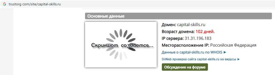 - Реальный возраст домена мошеннической конторы Капитал Скиллс