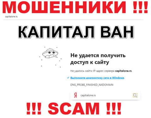 Как и сама шарага CapitalOne, ее интернет ресурс не работает. Обычно такое происходит, когда лохотрон кидает достаточное количество людей и имеет возможность вывести все деньги в оффшоры. Такая история и случилась с кухней Капитал Ван, которая рухнула как обычная финансовая пирамида, где заработали только ее владельцы.