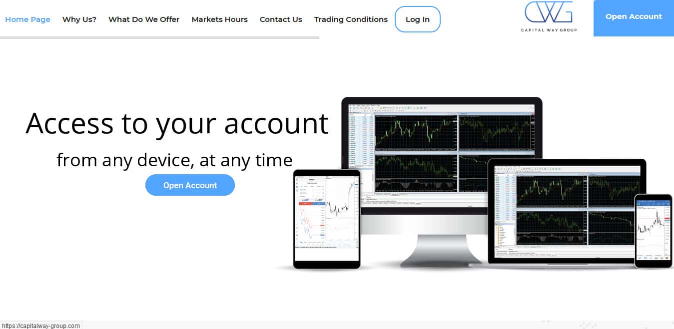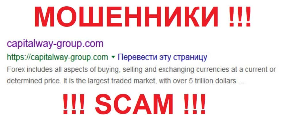 Capital Way Group - очередная кухня, которая предлагает своим клиентам заработки на торговле. В реале это очередные мошенники, которые просто кинут вас на деньги. Принцип работы кухни состоит в том, что все деньги крутятся внутри конторы и реального вывода на рынок нет. Сам так называемый "брокер" не заинтересован в том, чтобы вы зарабатывали, ибо тогда они теряют. Такова правда жизни.