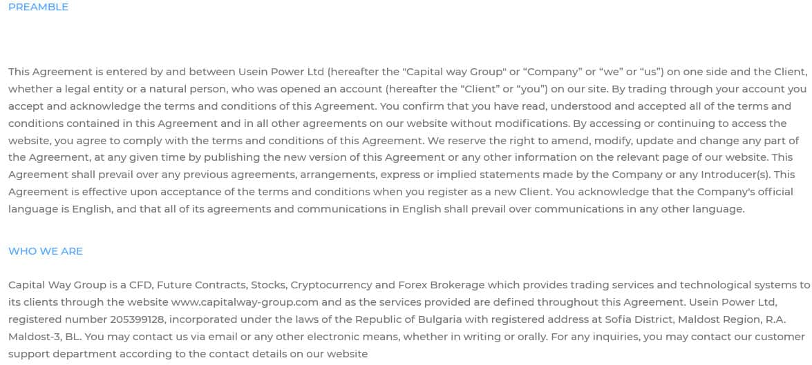 Политика конфиденциальности шараги Capital Way Group не дает вам никаких гарантий того, что ваши данные будут в безопасности. Вообще очень опасно их доверять такого рода конторам, потому что с вероятностью в 90% они их просто куда-нибудь рано или поздно сольют. Например, таким же лохотронщикам, как они сами.