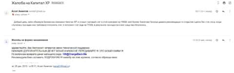 - Жалоба на Капитал ХП от обманутого клиента, утратившего примерно пару тысяч долларов