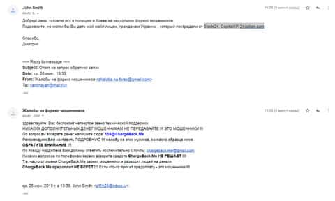Автор следующего материала в виде жалобы на жульнические организации КапиталХП, Стрейд 24, 24Опцион заявил о том, что сейчас готовится иск против перечисленных брокеров-аферистов. По поводу возврата утраченных денежных средств человеку посоветовали идти к ChargeBack.Me