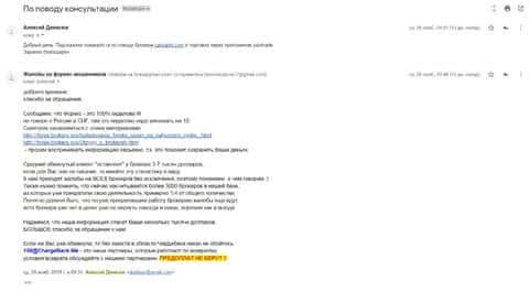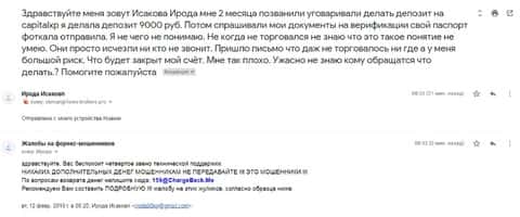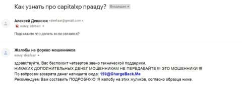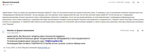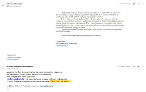 Письмо от потенциальной жертвы мошенничества брокерской кухни Капитал ХП