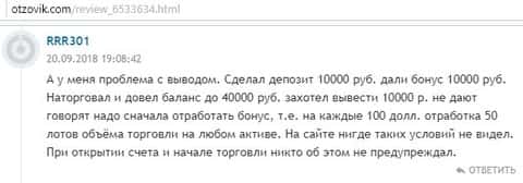 Мошенническая организация Капитал ХП обманула своего клиента. Они заманили его и заставили вложить 10 000 рублей и при этом начислсили еще 10 000 рублей бонуса, которые он не просил. У трейдера получилось наторговать 40 000 рублей и он решил вывести часть прибыли. Но лохотронщики сказали, что на каждые бонусные 100 долларов нужно отработать оборота 50 лотов. При чем они до подписания договора об этом не предупреждали. Аферисты решили не отдавать деньги, как обычно, а потом у них счета заблокируется и банк сгорит.