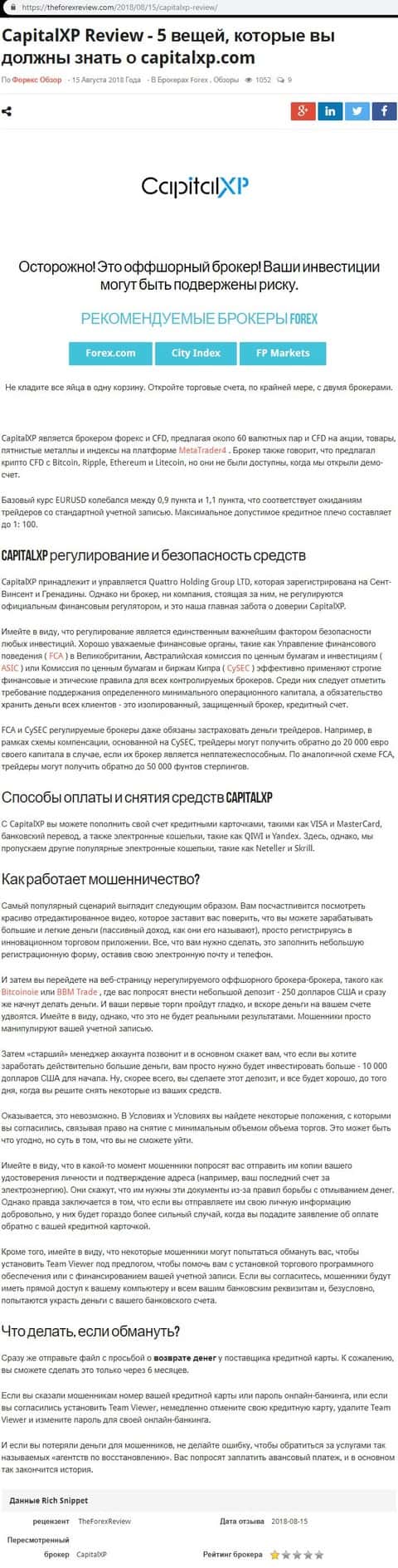 - О мошеннических делах Capital XP пишут популярные информационные форекс-ресурсы